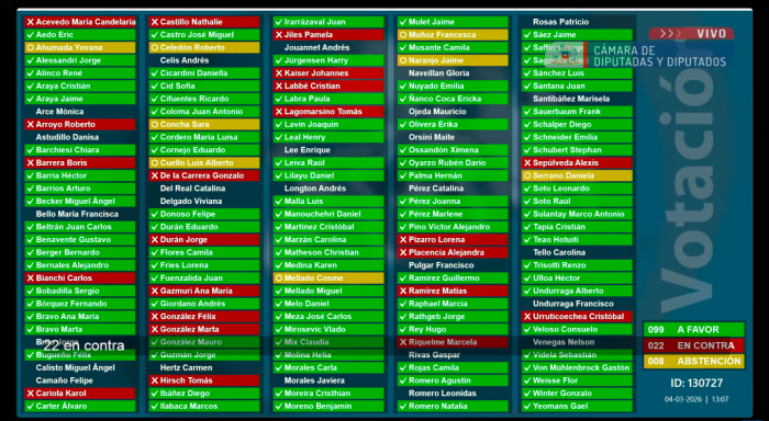 Y la oposición no lo dejó pasar. El diputado Luis Sánchez (REP) hizo reserva de constitucionalidad y advirtió que la discusión sobre el quórum debió darse antes de votar. Otros parlamentarios cuestionaron que el enunciado en pantalla indicara un tipo de quórum distinto y alertaron que, si se exigían 76 votos por tratarse de una norma orgánico-constitucional, los 75 obtenidos implicaban rechazo. “No puede la mesa interpretar a su antojo la aprobación o no de un artículo si este no alcanzó la votación”, se escuchó desde los escaños.