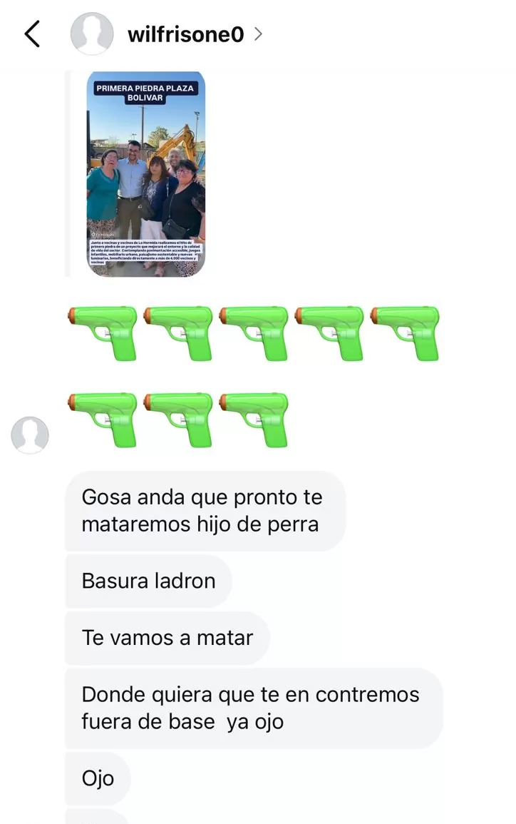 El municipio señaló que el edil recibió múltiples mensajes de grueso calibre. “Te vamos a matar”. Textualmente los mensajes señalaban: “te vamos aser como lo asemos en mexico te vamos a matar”, “no ande en espacio público solo” y “20 millones por tu cabeza perro maldito”, son algunas de las frases que evidenció.