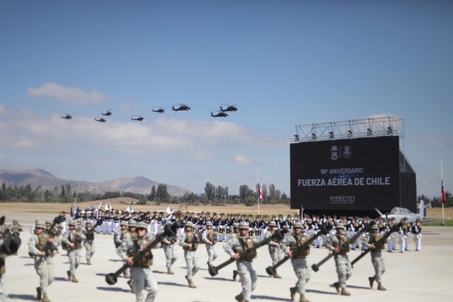 Desde la Base Aérea El Bosque, acompañado por el comandante en jefe, Hugo Rodríguez González, el Mandatario destacó la capacidad operativa y el proceso de modernización de la institución. “Tenemos que sentirnos tranquilos de tener una gran Fuerza Aérea que defiende la soberanía”, dijo, en una ceremonia que reunió a autoridades civiles y militares, y que incluyó un despliegue de más de 1.400 efectivos y cerca de 60 aeronaves.