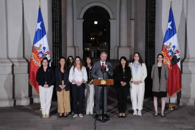 La escena en Palacio no fue casual: antes de la comparecencia ingresaron sucesivamente varias ministras al edificio presidencial, entre ellas la titular de Seguridad, Trinidad Steinert; la ministra de Educación, María Paz Arzola; la ministra del Deporte, Natalia Duco; y la vocera de Gobierno, Mara Sedini, en una señal de respaldo colectivo a Lincolao.