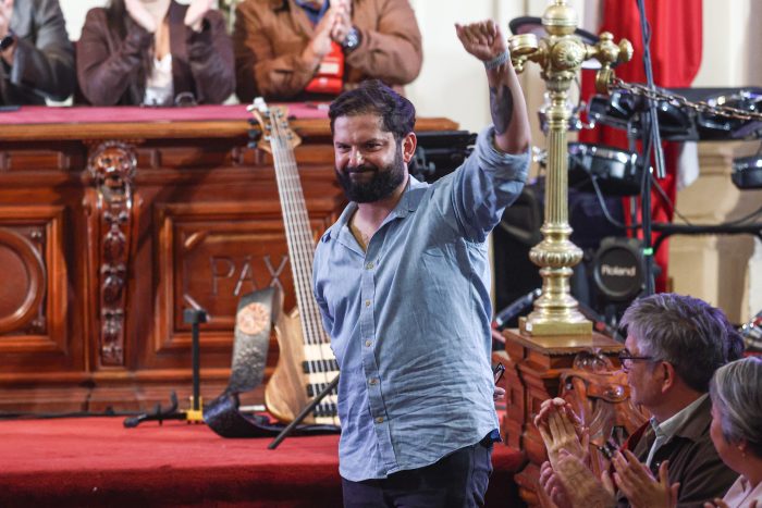 El expresidente Gabriel Boric en al acto de aniversario por los 93 años del Partido Socialista.