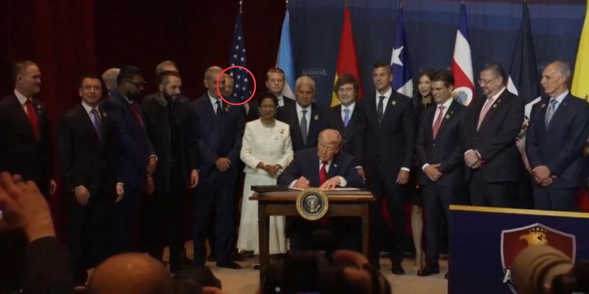 En la conferencia Shield of the Americas, Donald Trump fue el centro de atención, con José Antonio Kast ubicado casi al borde del encuadre en la foto oficial. La imagen refleja el simbolismo político de un encuentro paralelo a la Cumbre de las Américas, con mandatarios cercanos a Trump.