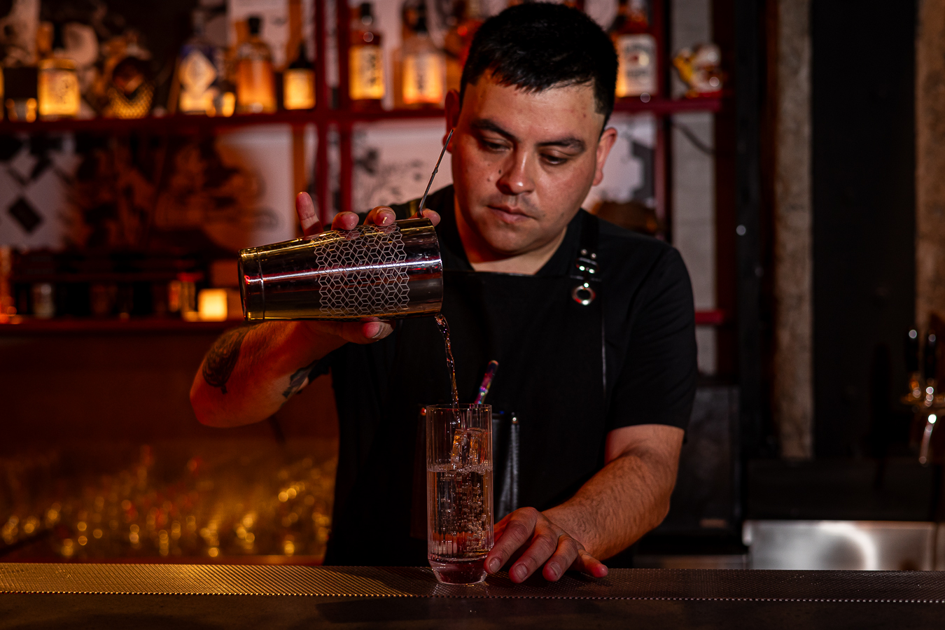 Luego probamos el Siempre Zen, presentado por el jefe de barra, Ramiro Miranda. Es uno de los cócteles recomendados y contiene gin infusionado en flor de mariposa, licor de sauco, cold brew de té verde y syrup de nori, wakame y pepino. Su presentación es preciosa: los tonos morados y rojos potencian las ganas de probarlo, más aún con los sabores que ofrece. Es elegante, suave, con buena potencia alcohólica y un toque de picor.