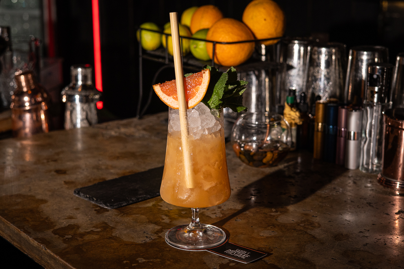 Santa’s Mistake: mezcla de rones cocinados en pan de pascua, con falernum y un mix de cítricos. Es un cóctel cálido, pero refrescante. Se siente ese pan de pascua, algo bien tropical pero cremoso. El pomelo aporta equilibrio a su dulzor.