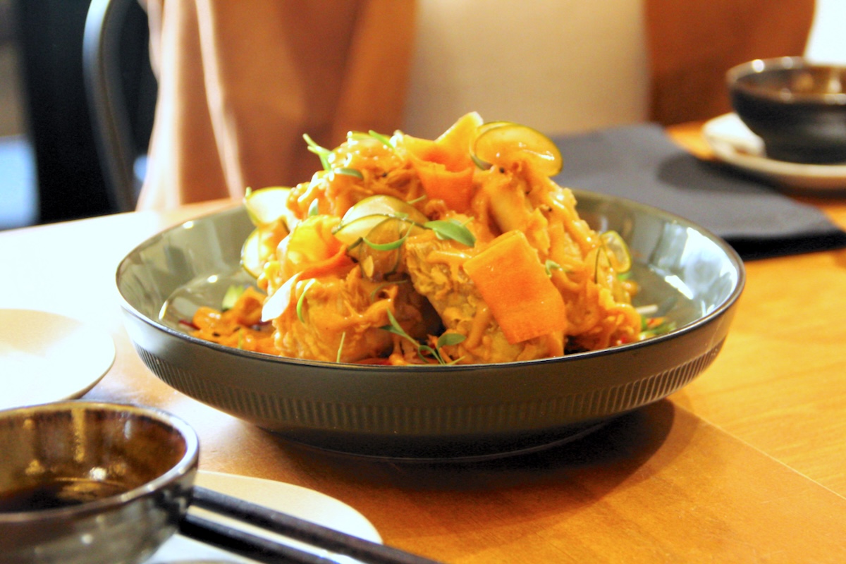En su carta desfilan gyosas, karaage, rolls y chirashis que ponen al pescado como gran protagonista. Imperdible es el Tiradito con Pesca del Día ($12.990): lisa —pescado azul— en leche de tigre de ají amarillo, con palta asada, esferas de ponzu y crocante de arroz. Fresco, vibrante y lleno de color; perfecto para disfrutar a cucharadas. Se puede acompañar con suaves Gyosas de Cerdo ($6.490) con carne desmechada, col china y aderezo thai, entregando una calidez amable en cada bocado.