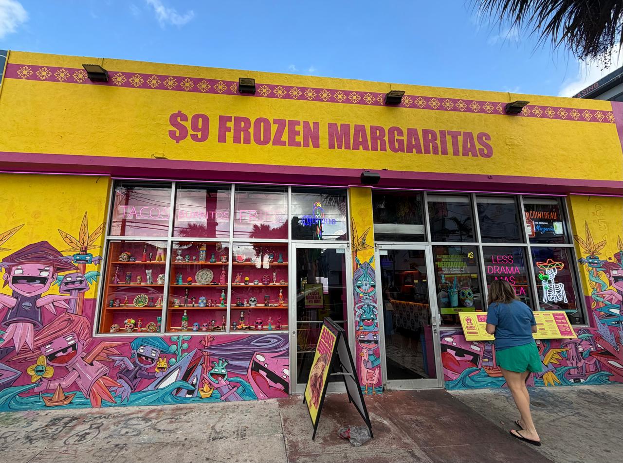 Un ejemplo es Mamas Wynwood, ubicado en 2519 NW 2nd Ave, que ofrece platos de inspiración mexicana como tacos, burritos y nachos con guacamole, además de sus clásicas “frozen margaritas”. El entorno, lleno de colores y neones, permite seguir disfrutando del arte mientras se come.