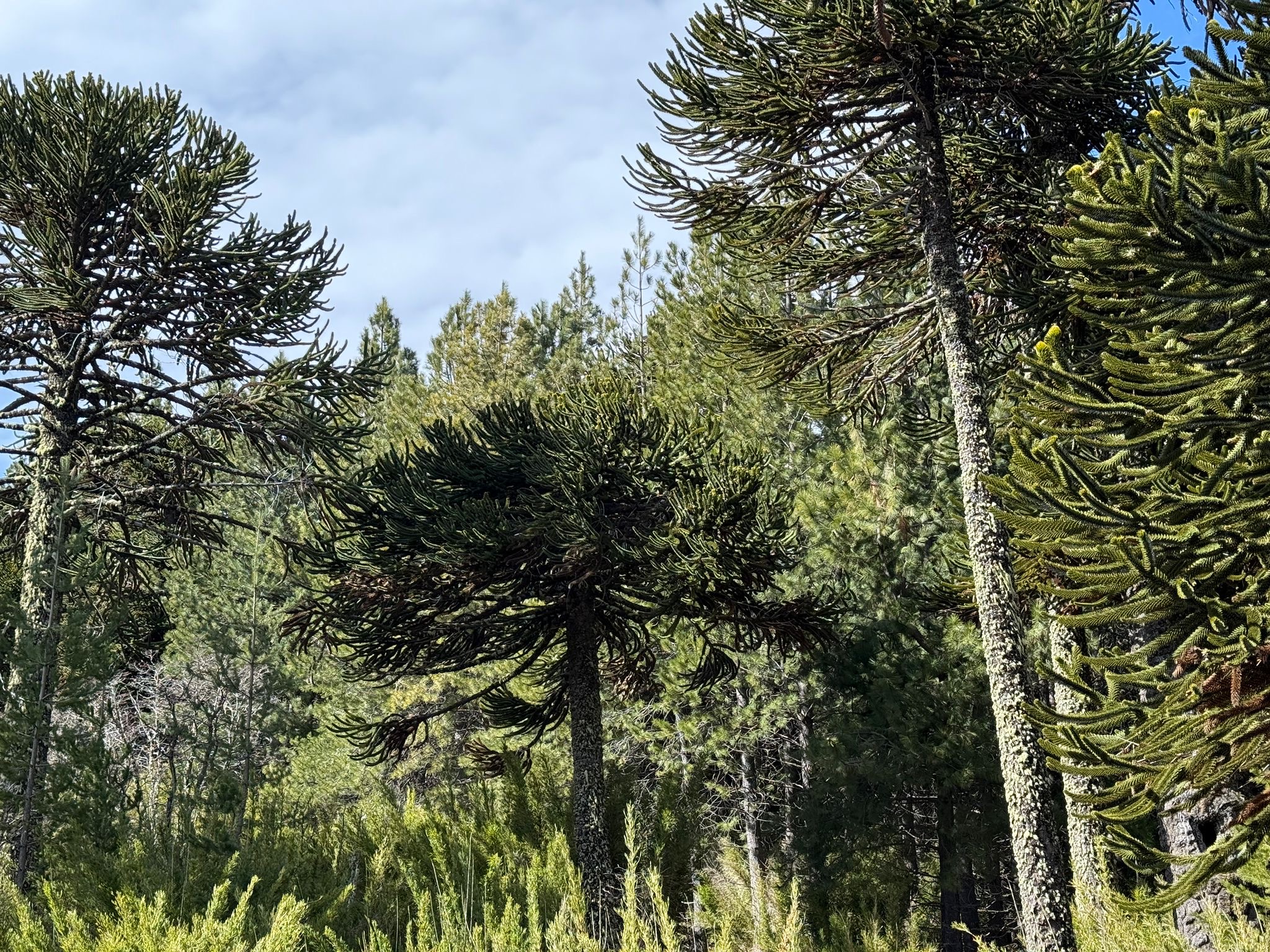 El camino que conduce al Lonquimay se abre paso entre bosques milenarios de araucarias, transformando la ruta en una experiencia sensorial donde el verde intenso, el aire puro y el silencio de la montaña se combinan con la imponente presencia del macizo.