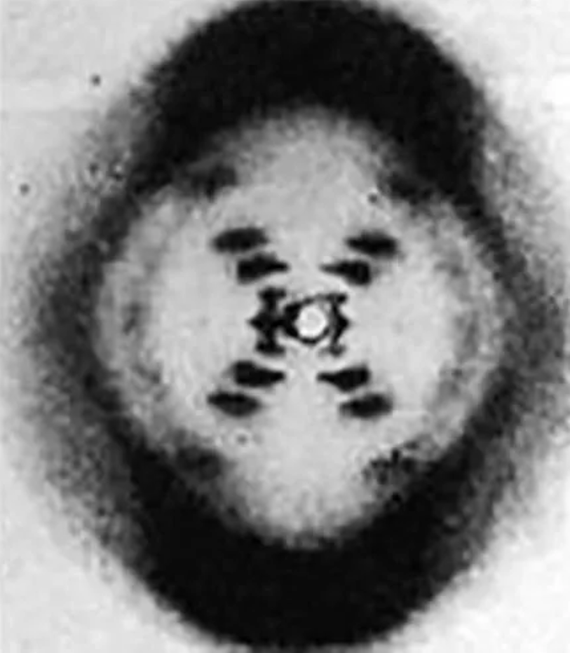 - La fotografía fue obtenida en 1952 en el King’s College de Londres por el estudiante de doctorado Raymond Gosling, bajo la supervisión de la científica Rosalind Franklin, experta en cristalografía: la técnica que permite obtener este tipo de imágenes. Gracias a su cuidadoso trabajo, lograron capturar una de las imágenes más nítidas del llamado ADN-B, una de las formas más estables de esta molécula.