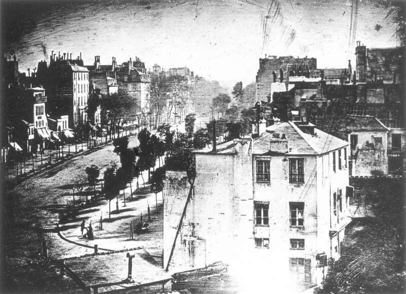 En ella se retrata una situación cotidiana en el Boulevard du Temple en el París de 1838. Debido al prolongado tiempo de exposición que requería la técnica, no se distinguen personas en movimiento; solo personas inmóviles como la silueta de un lustrabotas y su cliente. A pesar de que la espontaneidad de la imagen ha sido cuestionada posteriormente, Daguerre logró algo trascendental: convenció al secretario de la Academia de Ciencias de la Francia de la época, François Arago, para comprar la patente de la invención.