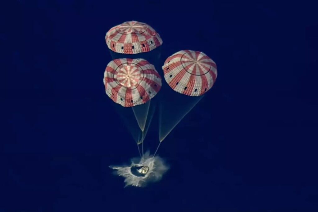 Momento del amerizaje de Artemis II en el océano Pacífico, ocurrido el 10 de abril de 2026. Crédito: NASA.